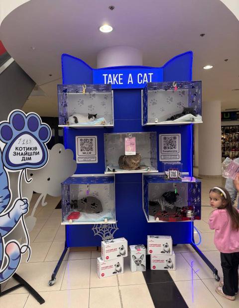 Проєкт «Take a Cat» – це місце, де кожна тваринка отримує шанс на нове життя. Тут їх лікують, доглядають і підбирають нових господарів, а також допомагають притулкам знайти домівки для котиків і собачок. Спершу команда працювала в Києві. Вони робили фотосесії, їздили на виставки та фестивалі. Люди помічали котиків і поверталися додому вже не самі, а з пухнастим другом у руках. Згодом облаштували постійні локації у Києві, Одесі та Львові з комфортними невеликими кімнатками для тварин.