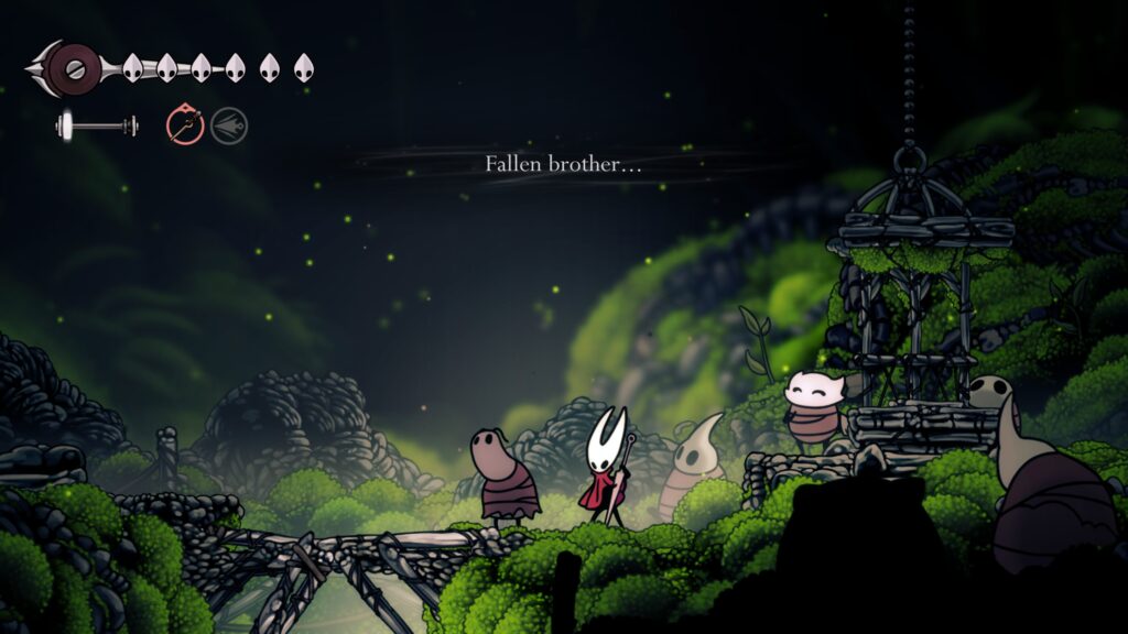 Наприклад, одним з найвизначніших персонажів, яких ви зустрінете під час своєї подорожі, є Шакра, з якою Хорнет навіть зав’язує дружбу. Будучи воїном і картографом, вона буде стабільно продавати вам карти, щоб зробити переміщення по королівству набагато легше. Згодом вона стане першою, кого ви будете шукати в новій місцевості. Іншим дуже улюбленим персонажем, як спільнотою, так і самою Хорнет, є Шерма. Маленький привітний пілігрим, який поступово просувається до Цитаделі разом з вами, легко пізнається за його співочими здібностями. Знаючи, яку судьбу зазвичай зустрічают дружні персонажі в «Hollow Knight», я непокоївся за його благополуччя усю гру. На мій подив, навіть Хорнет здавалася дійсно стурбованою за нього, що було несподіванкою, враховуючи її звичну відстороненість. Хоча ці двоє персонажів ви, швидше за все, зустрінете найчастіше, вони не єдині привітні обличчя, які ви побачите в цих краях. На шляху до вершини ви навіть зможете знайти декілька активних поселень, де ви переведете подих перед майбутніми пригодами.