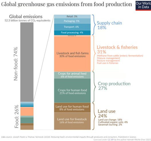 Тваринництво є одним із головних чинників екологічної кризи. Воно спричиняє знеліснення, значні викиди парникових газів і харчові відходи.